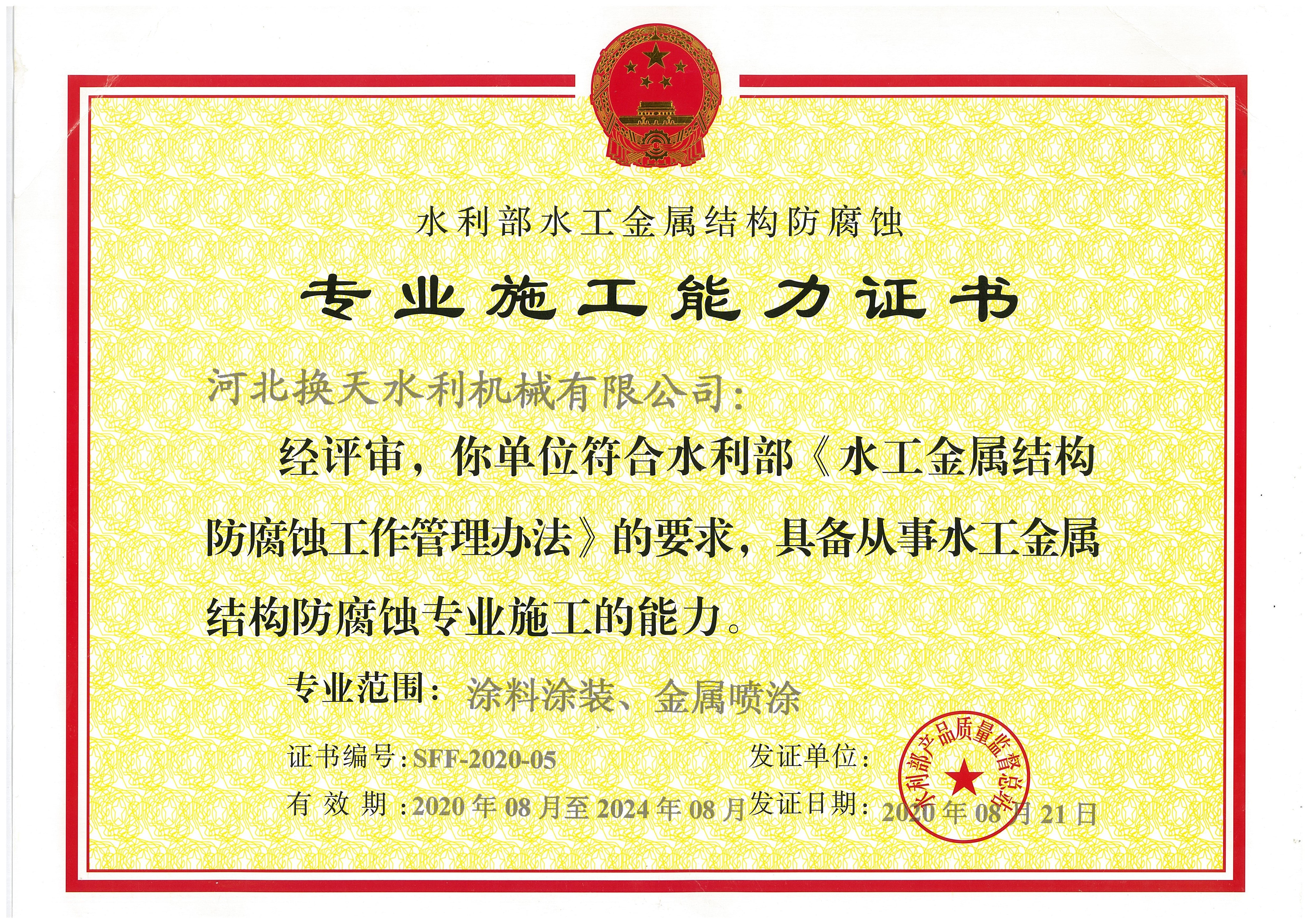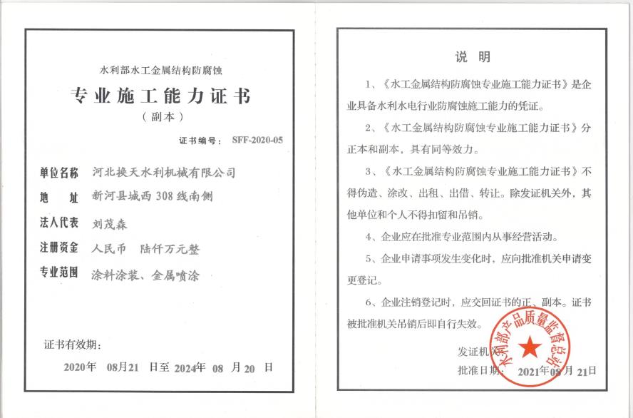 水利專業施工能力證書